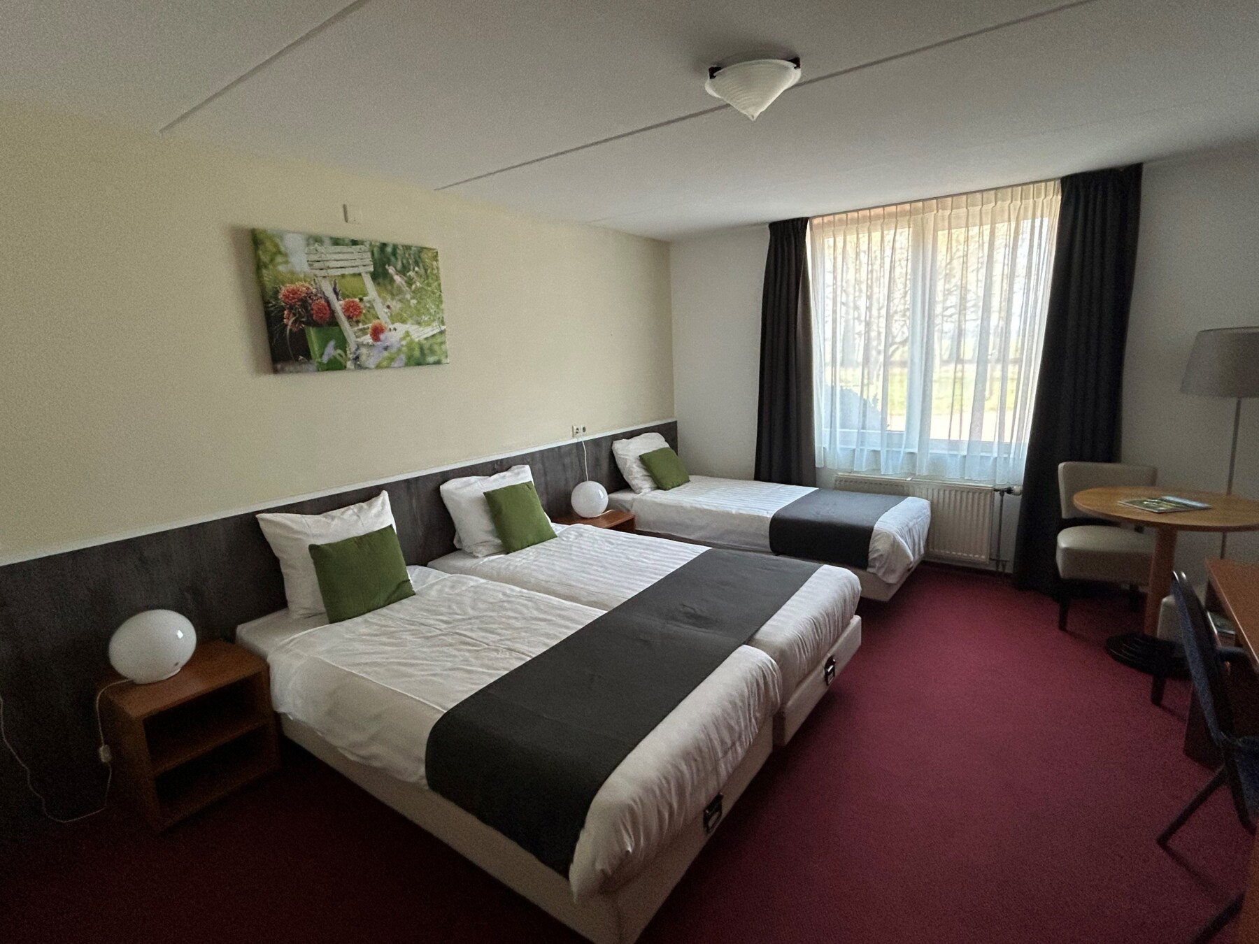In Hotel Landgoed Ehzerwold bieden we vier ruime 3-persoonskamers aan voor een gezellig uitje met familie of vrienden. Onze 3-persoonskamers zijn hetzelfde ingericht als onze standaardkamers, maar bieden extra ruimte dankzij een extra bed